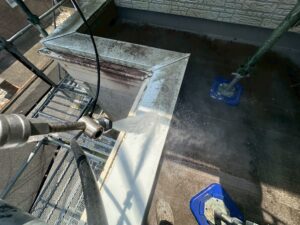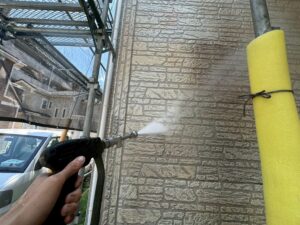 外壁には、カビやコケなどの汚れが付着しているため、塗装前に高圧の水で洗い流す必要があります。