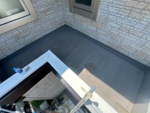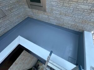 外壁だけでなく、付帯部・玄関上のパラペット部分の防水も施工いたしました。