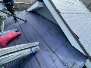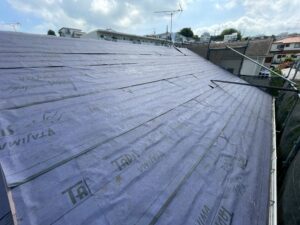 既存の屋根材の上から、ルーフィングと呼ばれる防水シートを張ります。