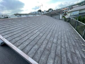 アスベストの入っていない(ノンアスベスト)屋根で、細かい傷や色褪せが見られます。