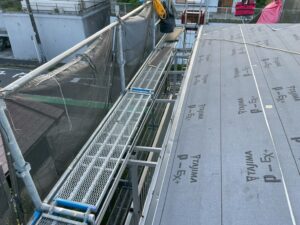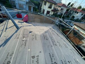 まず、既存の屋根材の上にルーフィングと呼ばれる防水シートを張ります。