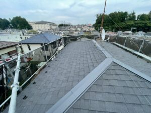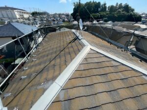 神奈川県相模原市にお住まいのお客様から、「風の強い日に屋根の破片がベランダに落下した。屋根の劣化が心配なので、一度見てほしい」とのお問い合わせをいただきました。