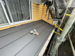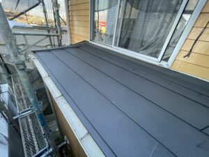 スーパーガルテクト(チャコール)という屋根材を使用しました。