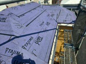 既存の屋根材の上から、ルーフィング(防水シート)を張ります。