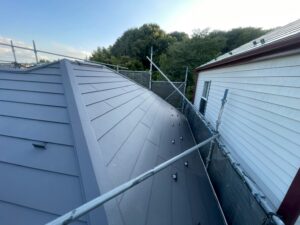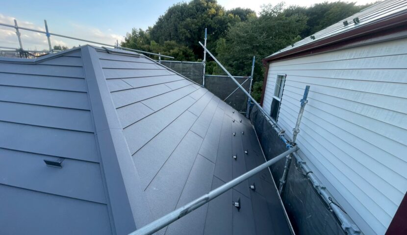 今回は、スレート屋根のスーパーガルテクトへのカバー工法を行いました。