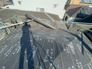 野地板の上に、ルーフィングと呼ばれる防水シートを張ります。