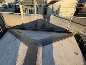 棟板金は屋根の頂上に設置されており、雨水の侵入防止・屋根材の固定などの役割があります。