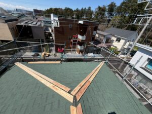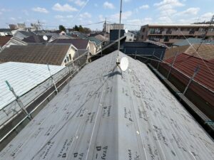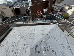 初めにルーフィングを敷いて防水性能を確保します。