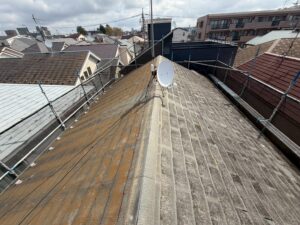 紫外線により屋根材の表面が少し傷んではいますが、表面的なもので、アルマのカバー工法の土台として強度に問題はありませんでした。